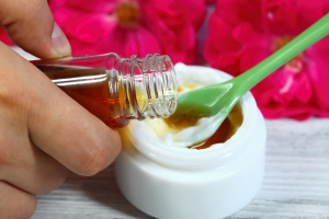 基本のレシピに、お好みのエッセンシャルオイルを1〜2滴加えます。ラベンダーやゼラニウムは肌を整える作用が期待でき、リラックスした気分でスキンケアタイムを楽しめます。ただし、エッセンシャルオイルは原液では使わず、必ずオイルで希釈してから使用してください。